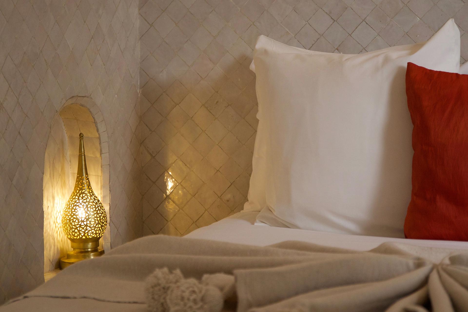 Toutes les chambres sont décorées dans un style marocain traditionnel et offrent une vue sur le patio intérieur.